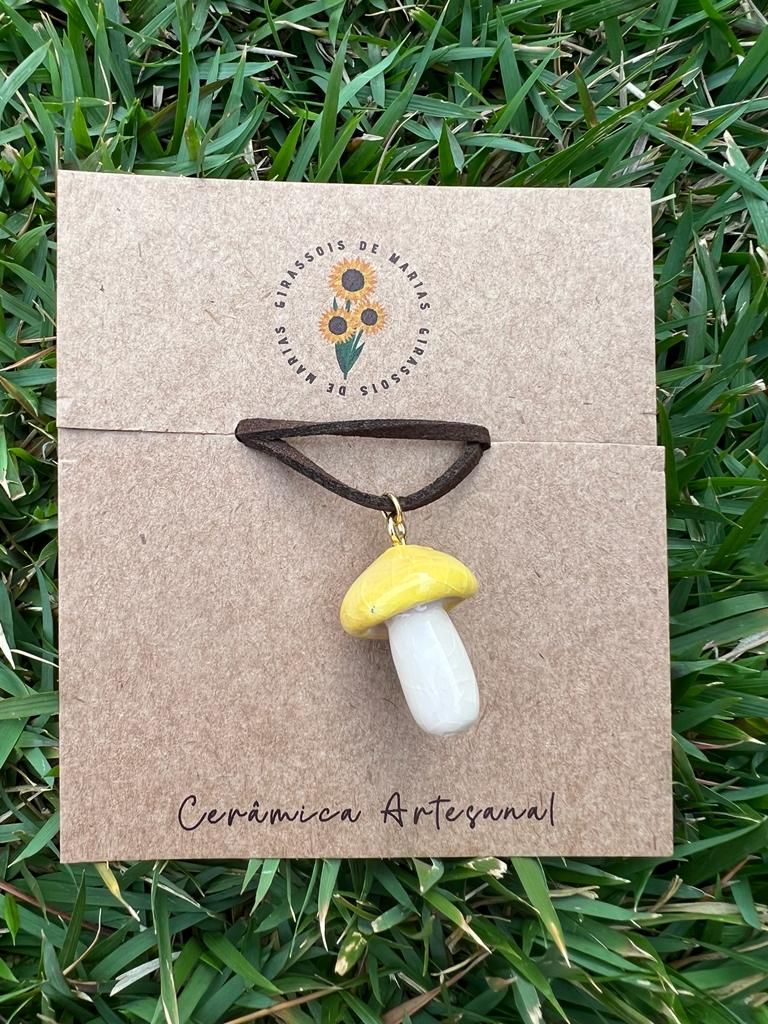 Colar difusor em cerâmica - modelado a mão em formato de cogumelo.